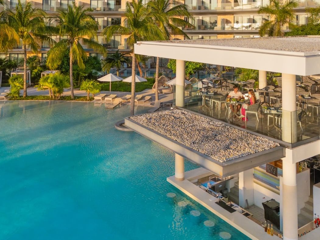 En la pacífica e icónica piscina ovalada del resort, se encuentra Vistas Pool Bar que cuenta con asientos dentro de la piscina y sirve refrescantes bebidas, cerveza, vino y más…