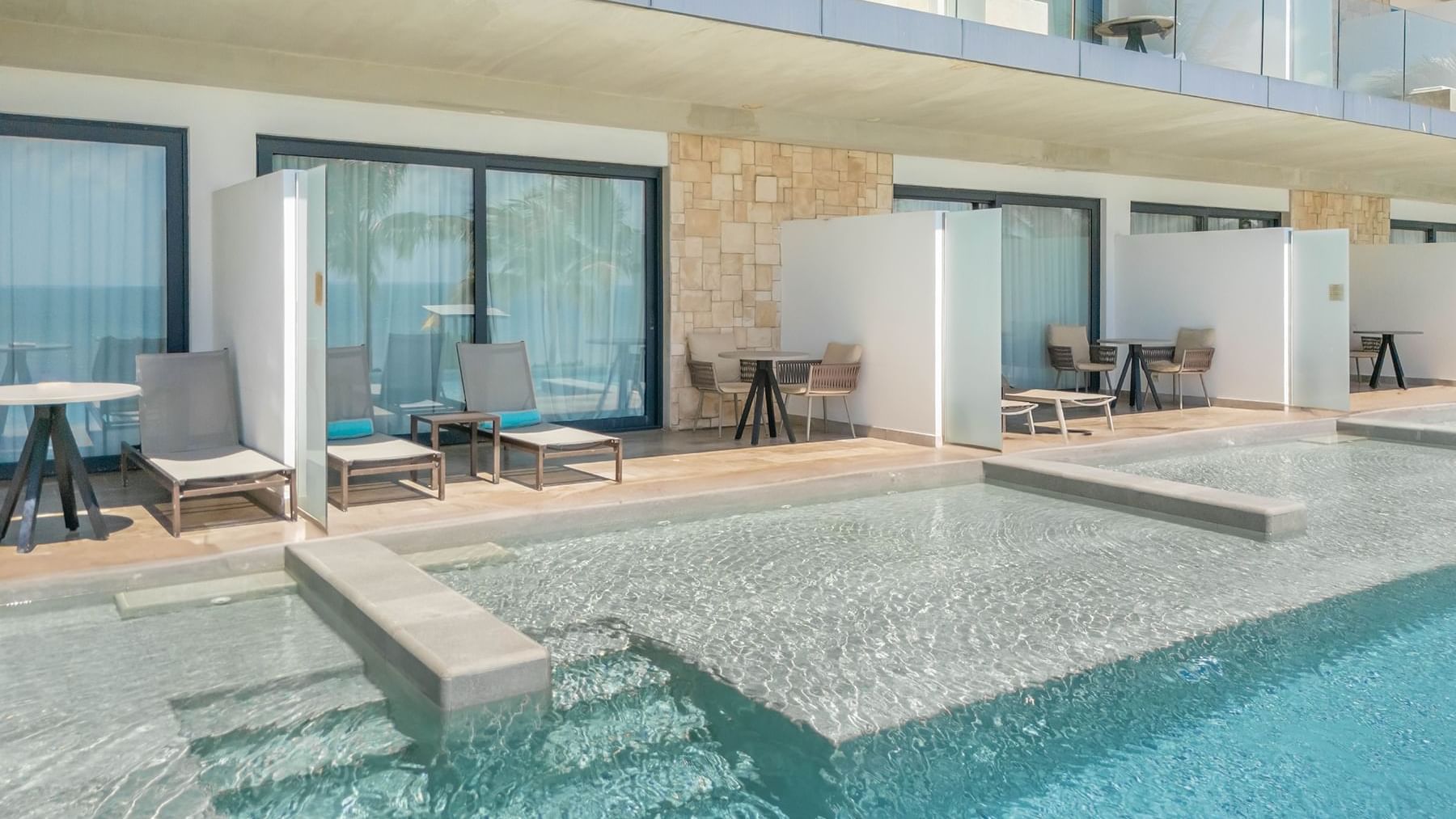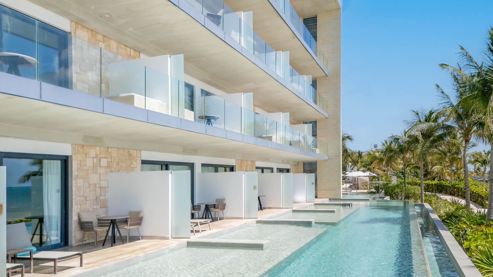 This floor-level, true oceanfront breathtaking suite will elevate your romantic getaway or honeymoon to a new level of comfort. Warm, inviting vibes, rich fabrics, and a contemporary Mexican design will set your Serenity Club experience, designed to take part in your love story. Seize a romantic turn-down service including a bottle of chilled premium sparkling wine and chocolate-dipped strawberries. Your exclusive infinity style swim-out pool awaits as the rising sun hovers above the waters of the ocean, and awakens you in your King bed. Begin your day with unparalleled pampering, as you seize our complimentary Wi-Fi. Your dedicated concierge will create a romantic ambiance with the aromatherapy of your choice and premium selected amenities for an absolute romantic experience.
